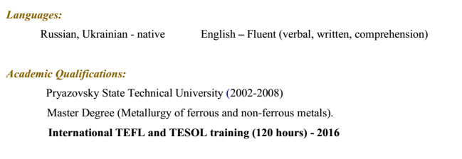 國籍: 俄羅斯 求職意向: 教師
