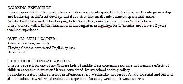 外教的工作經(jīng)歷