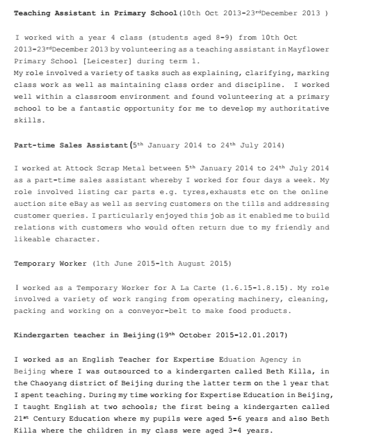 國(guó)籍: 英國(guó) 求職意向: 教師