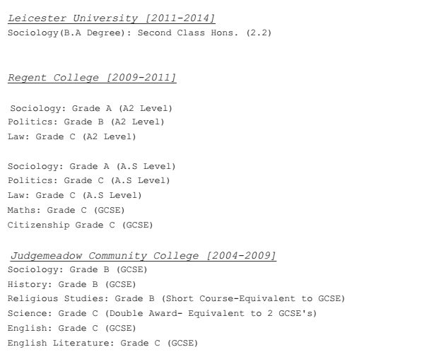 英國(guó)萊斯特大學(xué)社會(huì)學(xué)專業(yè),本科。140小時(shí)TEFL。小學(xué)幼兒園教學(xué)經(jīng)驗(yàn)。 |