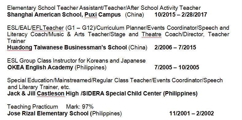 國籍: 其他       求職意向: 教師