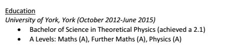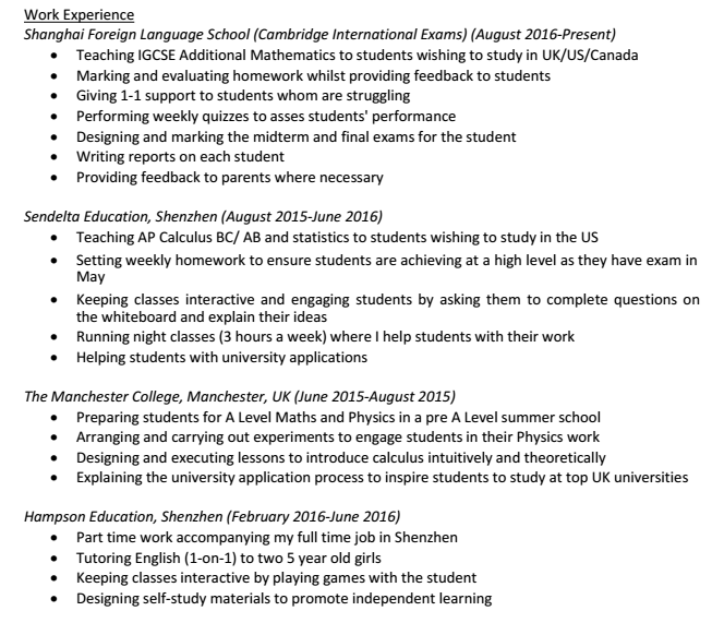 約克大學(xué)物理專業(yè)本科。教過A Level /AP數(shù)學(xué)物理微積分學(xué)科。 |