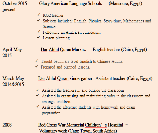 7月份拿到本科證書,150小時(shí)TEFL。2年左右教學(xué)經(jīng)驗(yàn)。 |
