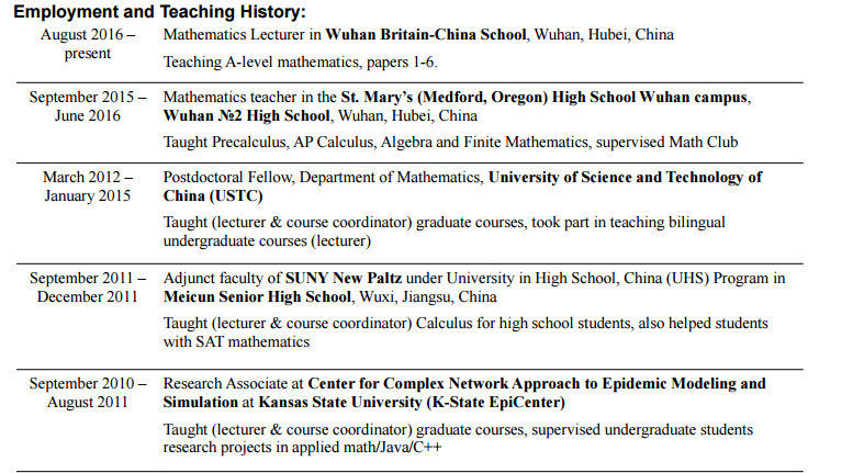 國籍: 美國 求職意向: 教師