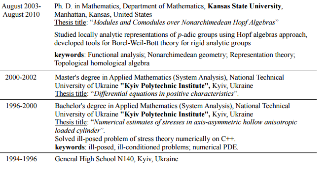 數(shù)學(xué)專業(yè)本科, 碩士, 博士, 只教數(shù)學(xué), |