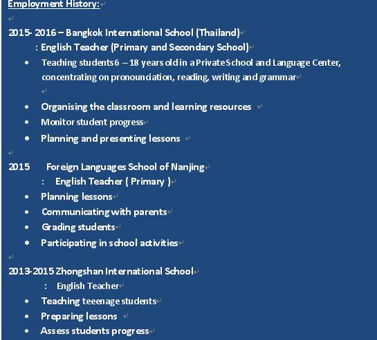 外教的工作經(jīng)歷