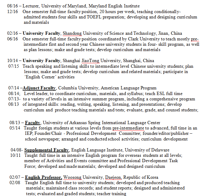 碩士學(xué)歷,英語(yǔ)專業(yè)本科,教學(xué)碩士,有CELTA證書,多年教學(xué)經(jīng)驗(yàn),教過(guò)大學(xué)高中,其中十多年各國(guó)大學(xué)教學(xué)經(jīng)驗(yàn),求職大學(xué)職位??梢员M快上崗。