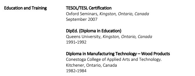有TEFL。教育專業(yè)。8年高中教學(xué)經(jīng)驗。求職中學(xué)大學(xué)或者商務(wù)英語職位。