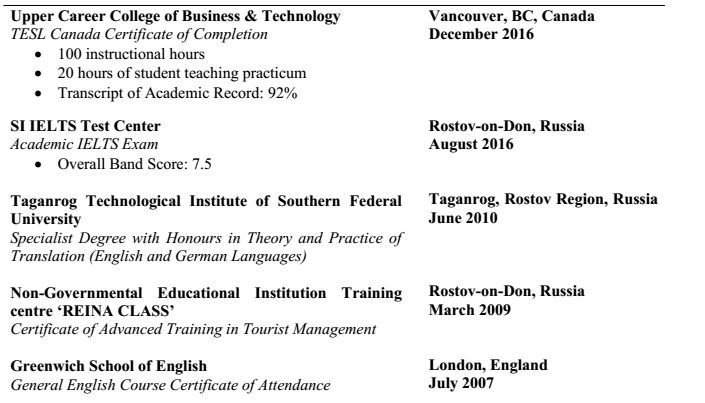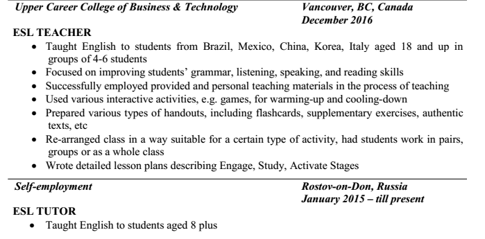 本科有TESL,加拿大做過英語教學工作。 |
