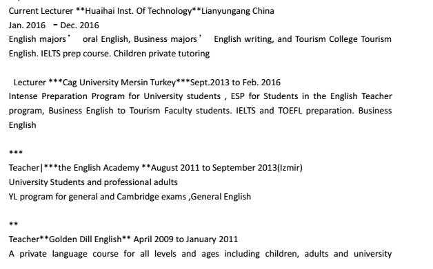 本科TESOL,十多年經(jīng)驗(yàn),求職大學(xué)職位。 |
