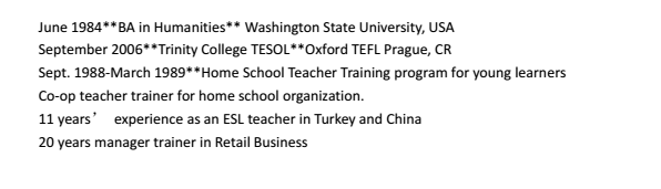 國(guó)籍: 美國(guó) 求職意向: 教師