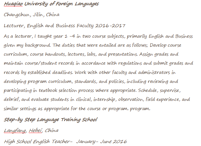 國籍: 其他 求職意向: 教師