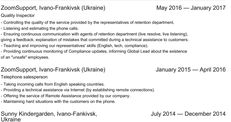 國(guó)籍: 烏克蘭 求職意向: 教師