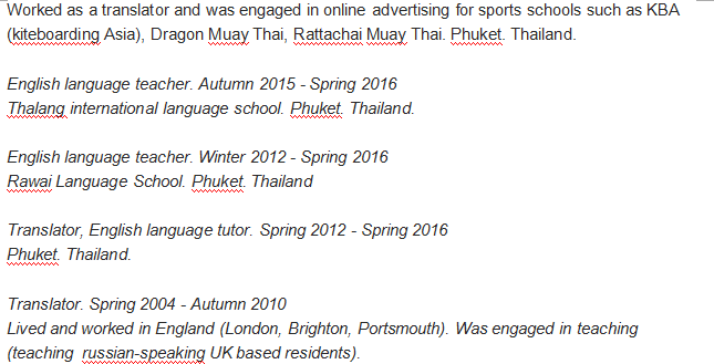 多年教學經(jīng)驗,做過翻譯工作。英國待過多年,盡快上崗。 |