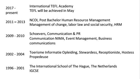 國籍: 意大利 求職意向: 教師