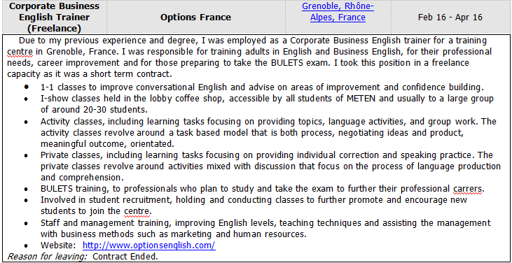 國籍: 比利時 求職意向: 教師
