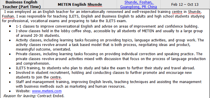 英國男,考文垂大學(xué)工商管理本科學(xué)位,有TESOL,可教商務(wù)英語,曾在中國多所大學(xué)任教,資料齊全 |