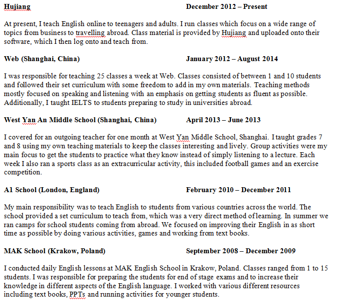 本科CELTA,多年經(jīng)驗,有旅游簽,求職中學大學或者成人教學職位。 |
