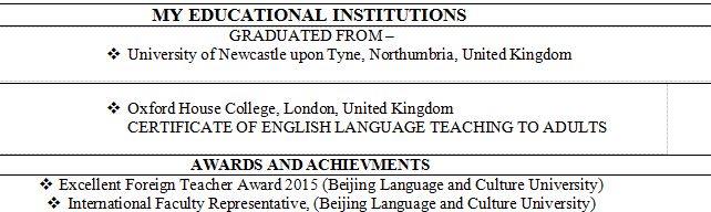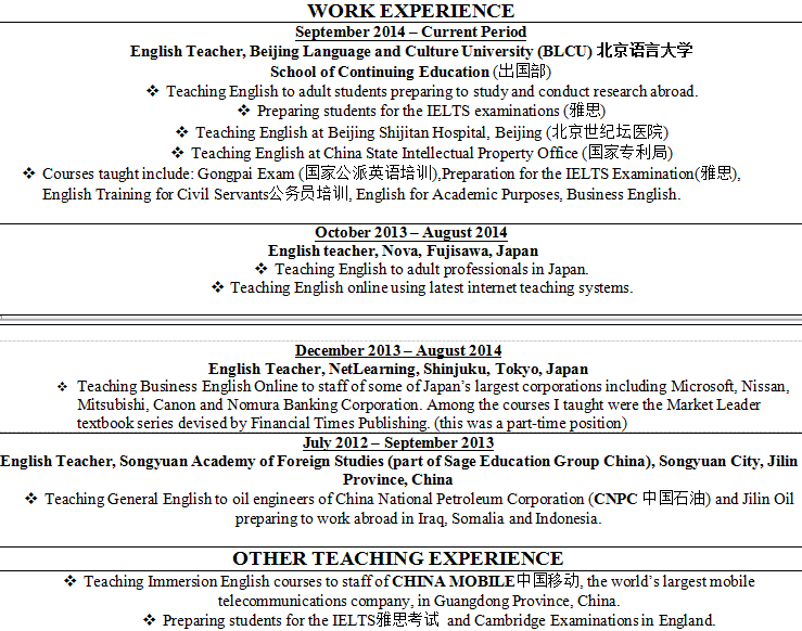 國籍: 英國       求職意向: 教師