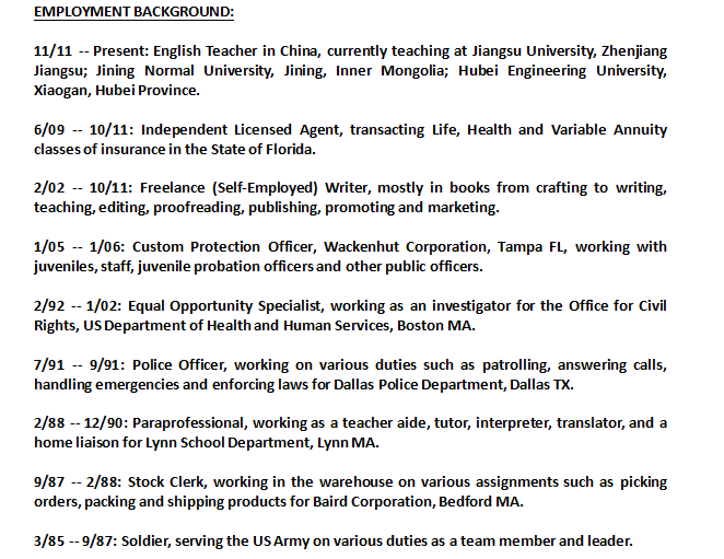 國(guó)籍: 美國(guó) 求職意向: 教師