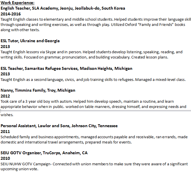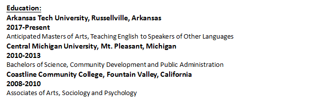 國籍: 美國 求職意向: 教師