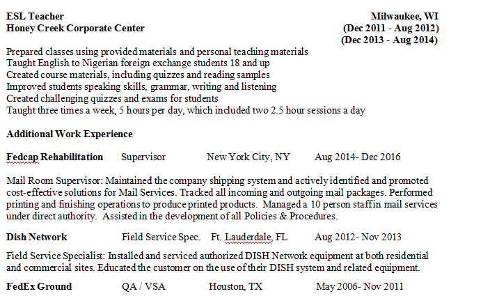 外教的工作經(jīng)歷