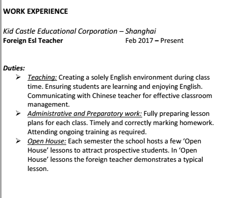 本科TEFL有工簽,一個(gè)月后可以開始或者下學(xué)期職位,求職周末休息類學(xué)校。 |