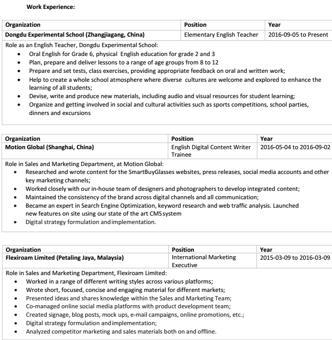 國籍: 比利時(shí) 求職意向: 教師