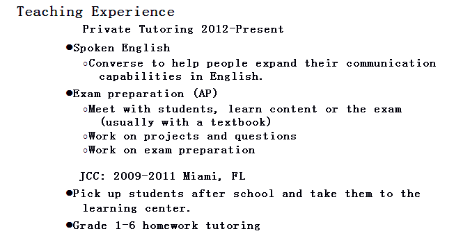 國(guó)籍: 美國(guó) 求職意向: 教師