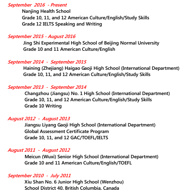 國籍: 美國 求職意向: 教師