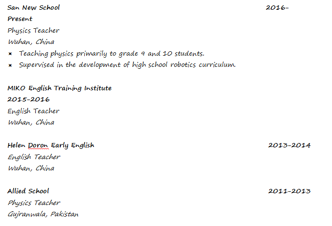 國籍: 其他 求職意向: 教師