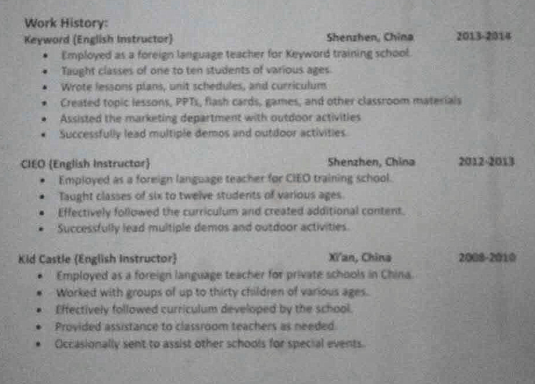 學歷: 本科 期望薪資: 8000-11000(Yuan/M)