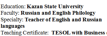 英語專業(yè)本科,TESOL教學經(jīng)驗。 |