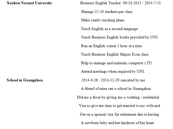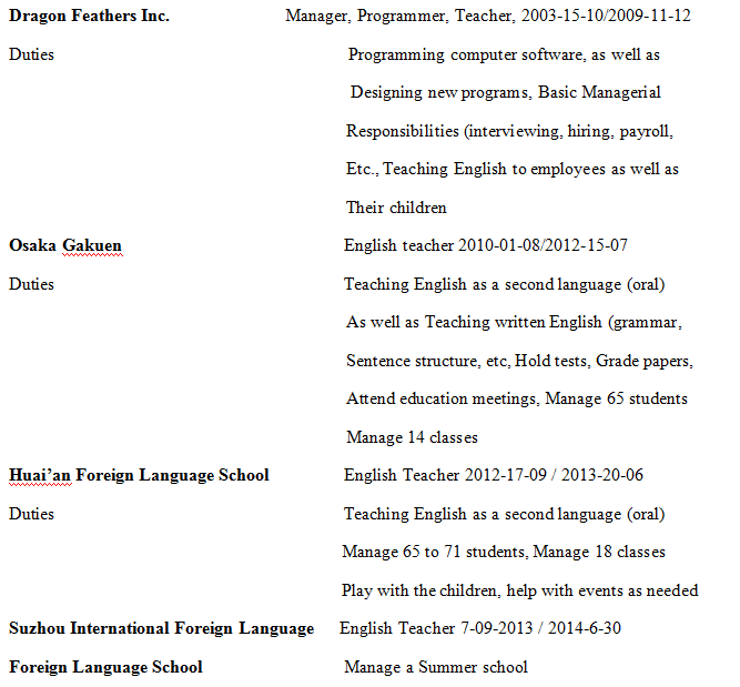 國籍: 美國 求職意向: 教師