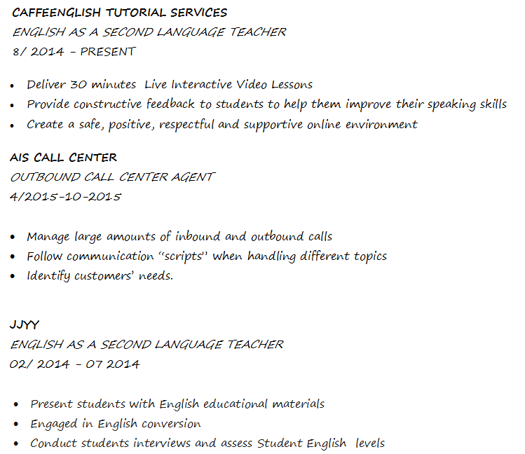 國籍: 其他 求職意向: 教師