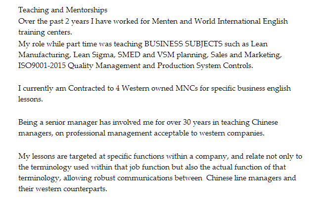 國籍: 英國 求職意向: 教師
