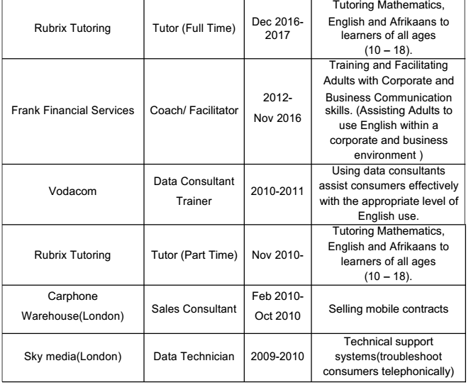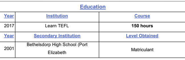 150小時(shí)TEFL,教學(xué)經(jīng)驗(yàn) |