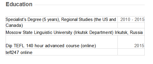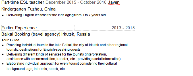 國籍: 俄羅斯 求職意向: 教師
