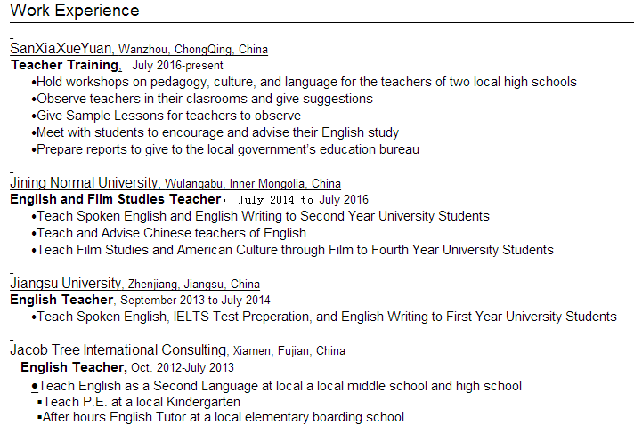 國籍: 美國 求職意向: 教師