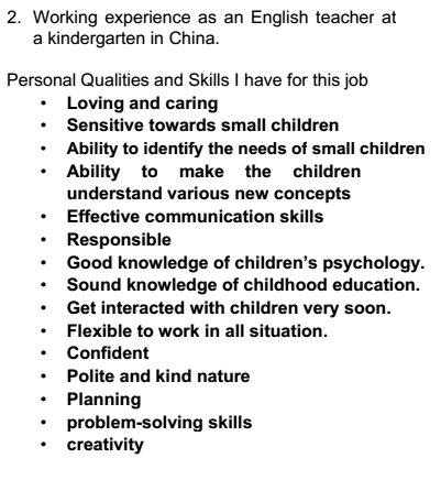 有中國幼兒園教學經驗,風格活潑,希望學校提供任意簽證 |