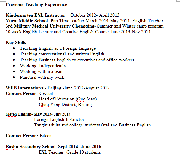 教育專業(yè),TEFL,教學(xué)經(jīng)驗,求職周末休息類職位 |