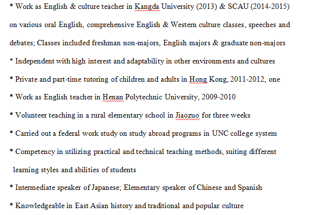 國(guó)籍: 美國(guó) 求職意向: 教師