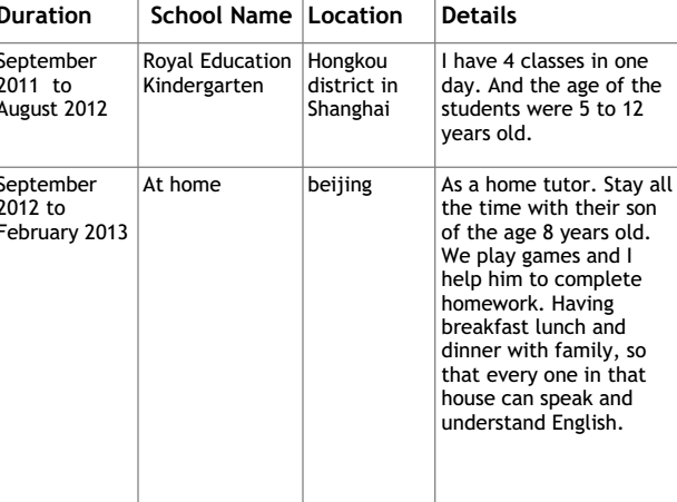 國籍: 法國 求職意向: 教師