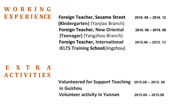 國籍: 其他 求職意向: 教師