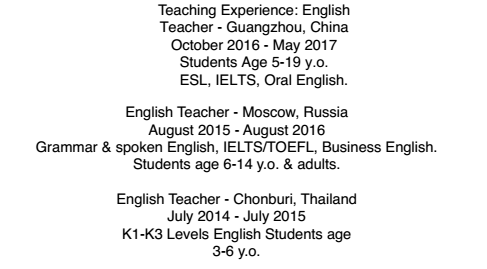 國籍: 美國 求職意向: 教師