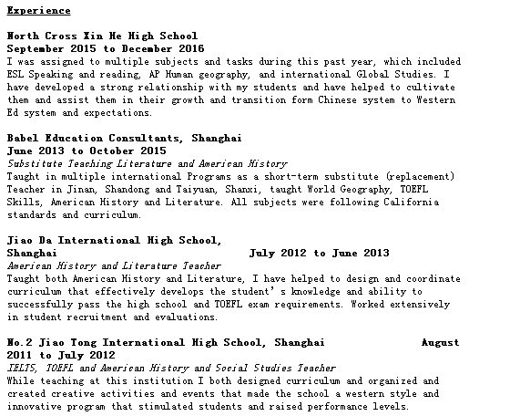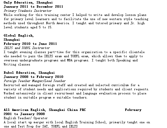 美國外教,本科學位,有TEFL,在上海,家屬簽,可盡快到崗 |