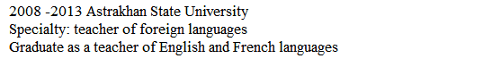 俄羅斯外教,可以盡快到崗,英語,法語專業(yè)畢業(yè),教學(xué)經(jīng)驗特別豐富 |