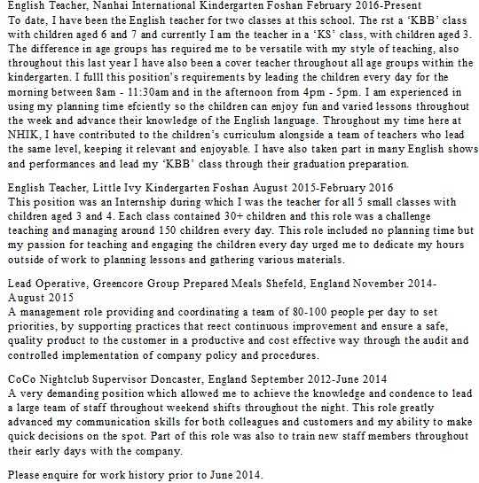 國(guó)籍: 英國(guó) 求職意向: 教師