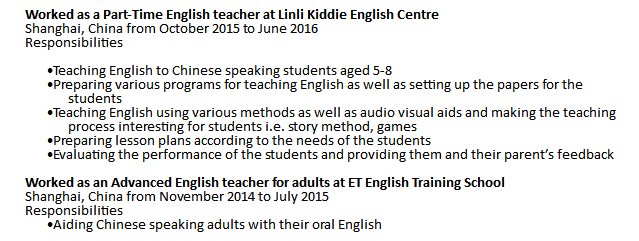 國籍: 加拿大 求職意向: 教師