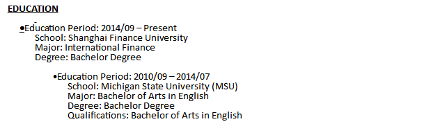 國籍: 美國 求職意向: 教師